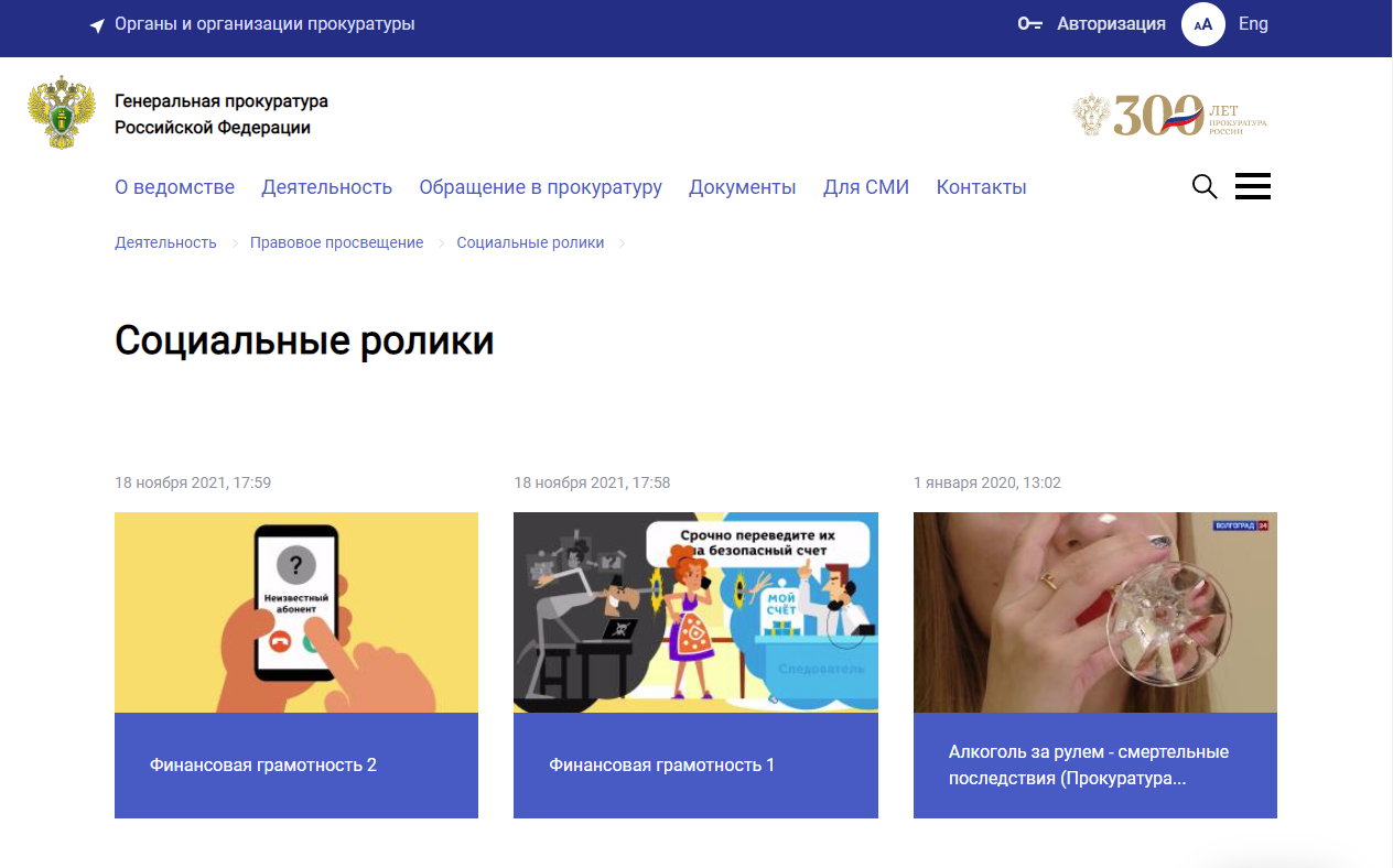Видеоматериалы, опубликованные в разделе "Правовое просвещение" на странице Генеральной прокуратуры